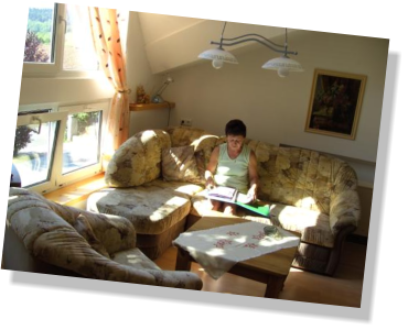 Bei uns stehen Ihnen Kaminkeller, Frühstücksraum, Blockhaus mit Grill, Grillplatz mit Freisitz, Sauna, Kinderspielzimmer, Spielplatz sowie Reit und Angelmöglichkeit zur Verfügung. Die Gästeküche neben dem Frühstücksraum bietet Familien und Gästen die Möglichkeit gemeinsam zu kochen und zu Essen. Auf Wunsch erhalten Sie Frühstück ebenso wie Erzeugnisse aus eigener Herstellung. Weiterhin bieten wir Gästeabholung und Brötchenservice. In unserer Wander- und Radwanderregion gibt es viele Sehenswürdigkeiten, die Sie in kürzester Zeit erreichen können. In der näheren Umgebung befinden sich auch Hallen- und Freibäder. Ebenso können Sie sich von den Wellnessangeboten der Thermalbäder in der Nähe verwöhnen lassen. Parkplätze befinden sich im Hof.